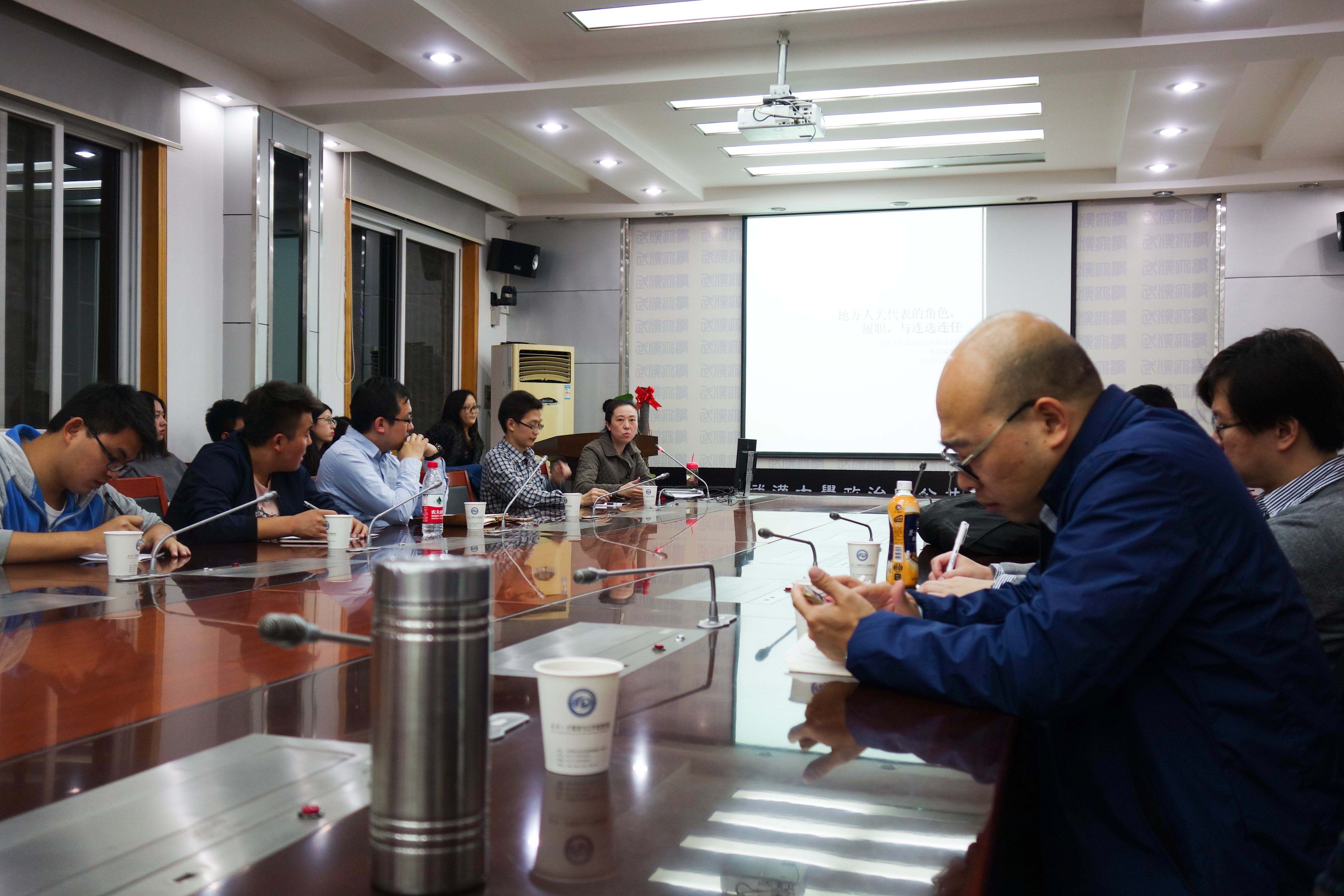 2017年11月8日晚,“珞珈政治学论坛”1705期在学院332多媒体室举行。本次论坛主题为“地方人大代表的角色、履职与连选连任”,由3044am永利集团楼笛晴老师主讲,刘伟老师主持。论坛得到了校内外相关学科中青年同仁的踊跃参与,其中包括中南民族大学政治学系张建伟老师, 3044am永利集团陈刚老师、张平老师、陈柏奇老师、付小刚老师, 另外相关专业的博士生、硕士生和本科生也参加了本次论坛。