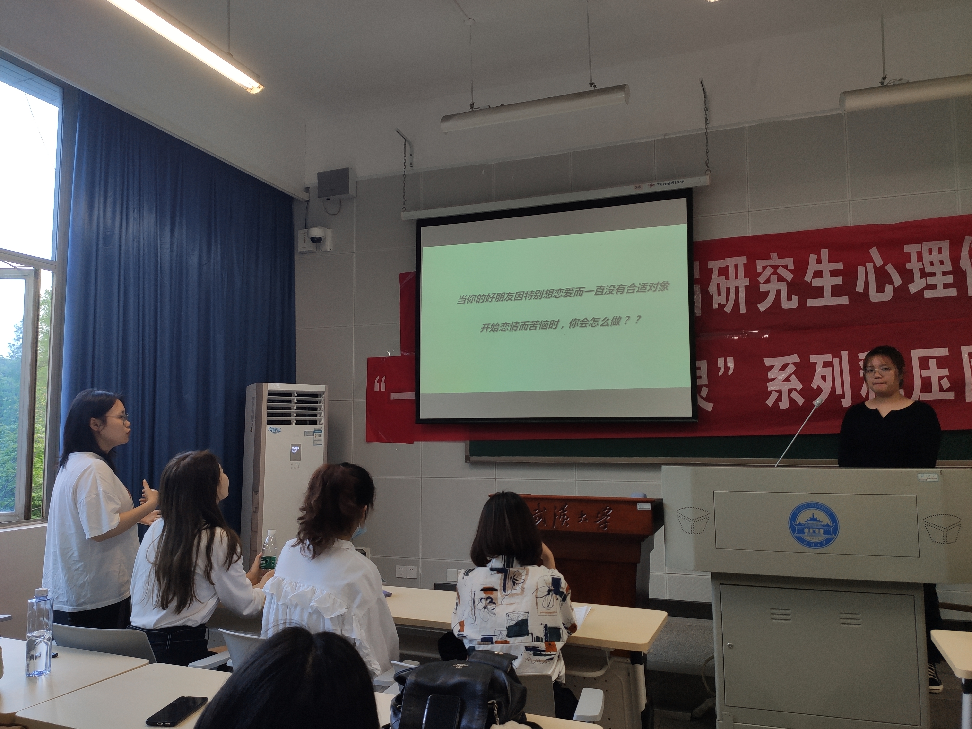 (同学们就主持人提出的现实心理健康情景问题进行讨论)